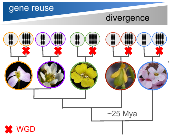 Our main goal is to understand fundamental evolutionary processes generating and maintaining diversity in nature. We primarily focus on evolutionary consequences of whole genome duplication, a massive mutation that is ubiquitous among plants. We also address the genomic basis of repeated plant adaptation to challenging environments such as alpine stands and toxic soils. We combine systematic sampling of natural populations with a wide range of genomic and ecological approaches. To build our hypotheses, we use comprehensive knowledge of natural variation of our study systems, primarily wild members of the Arabidopsis model and its relatives.